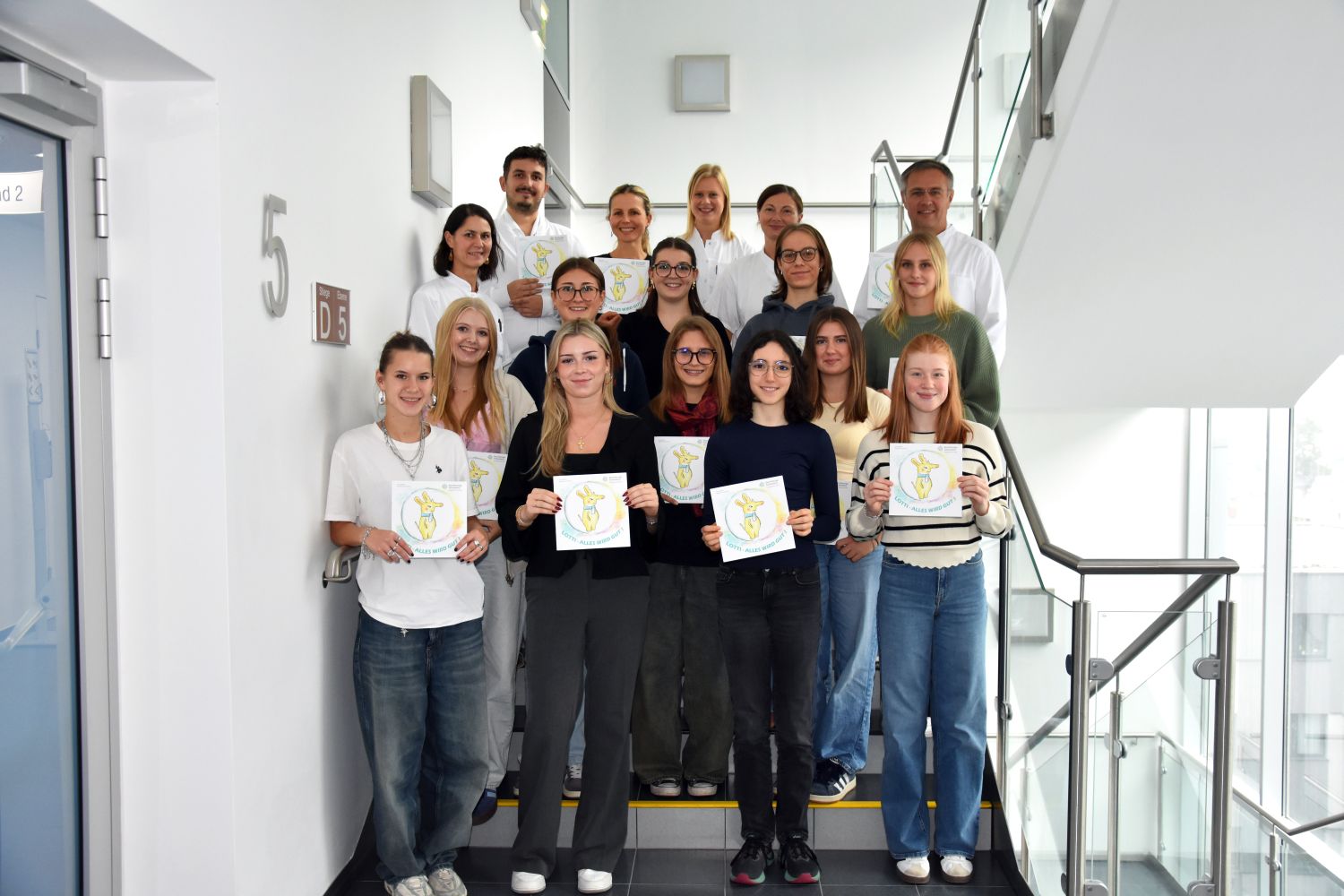 Im Rahmen eines besonderen Schulprojekts haben die Schülerinnen der 7B (Gruppe KUGE Stad) letztes Jahr ein liebevoll gestaltetes Kinderbuch illustriert, das künftig in der Logopädieabteilung der HNO-Abteilung des Krankenhauses Ried im Innkreis zum Einsatz kommt.