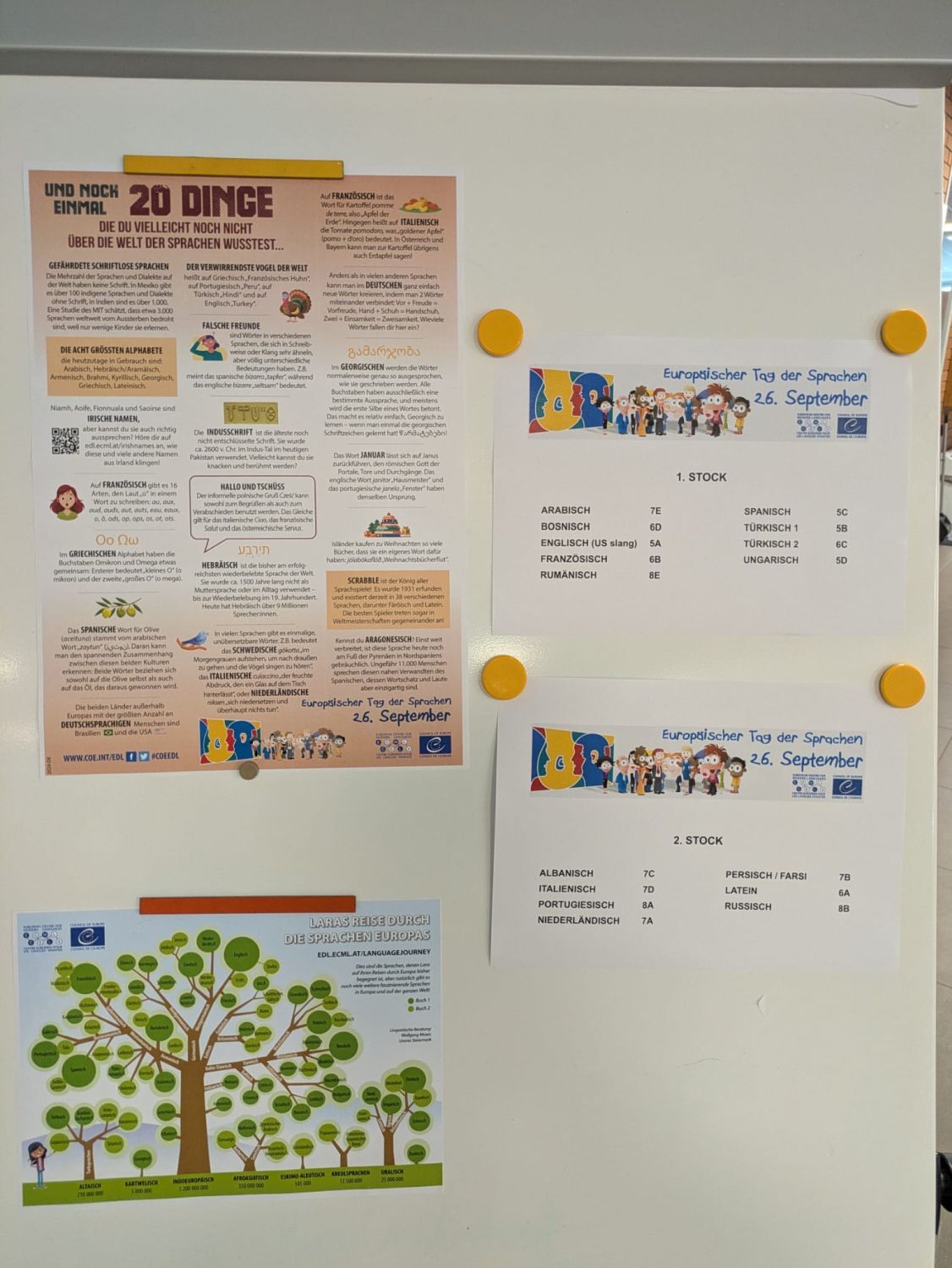 Am 26. September, dem Europäischen Tag der Sprachen, feierte die Schulgemeinschaft des BORG das Sprachenlernen und die sprachliche Vielfalt. Schüler*innen und Lehrer*innen boten Workshops in den 15 Sprachen Albanisch, Arabisch, Bosnisch, Englisch, Französisch, Italienisch, Latein, Niederländisch, Persisch / Farsi, Portugiesisch, Rumänisch, Russisch, Spanisch, Türkisch und Ungarisch an. Dieses Projekt zeigte, dass Mehrsprachigkeit zu einem besseren Verständnis untereinander beiträgt und stärkte die Vielfalt und den Zusammenhalt im BORG.