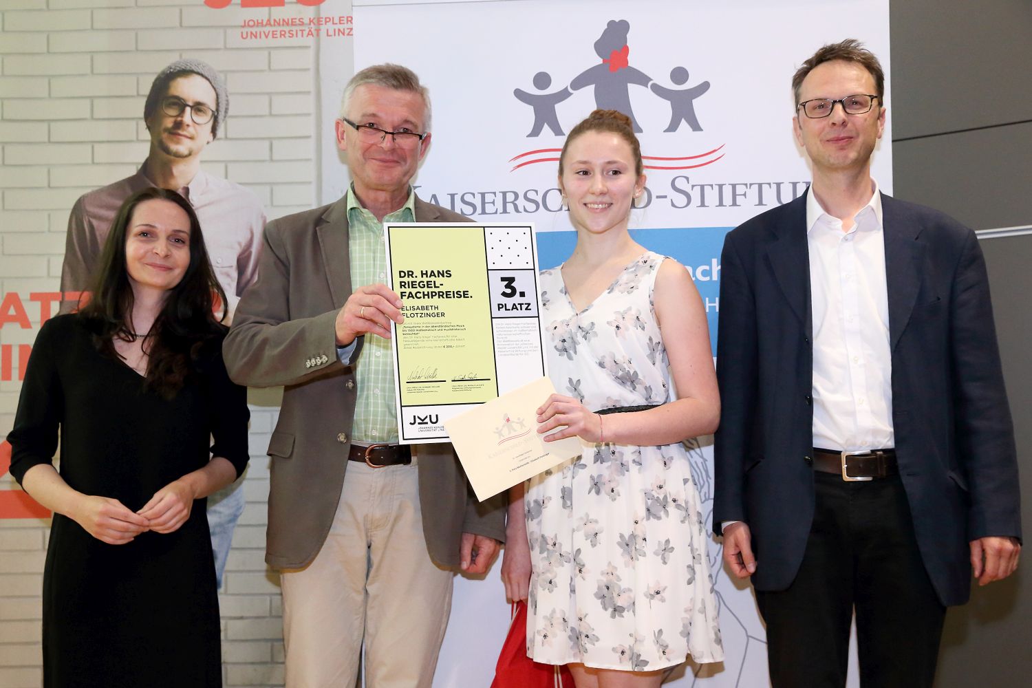 Am 4. Juni 2018 erreichte Elisabeth Flotzinger aus der Abschlussklasse 8A Klasse den 3. Platz des Hans-Riegel-Fachpreises 2018 und erhielt ihre Ehrung in einer feierlichen Überreichung an der Johannes Kepler Universität Linz. Der Dr. Hans Riegel-Fachpreis fördert SchülerInnen mit großem Talent im mathematisch-naturwissenschaftlichen Bereich. Der Wettbewerb ist eine Kooperation zwischen der JKU Linz und der Kaiserschild Stiftung. Der Preis wurde ihr für ihre herausragende Vorwissenschaftliche Arbeit mit dem Titel „Tonsysteme in der abendländischen Musik bis 1500 mathematisch und musikhistorisch betrachtet – Das pythagoreische und das natürlich-harmonische Tonsystem“ (Fachbetreuer Mag. Andreas Sandmeier) im Fach Mathematik verliehen. Als leidenschaftliche Kontrabassistin war dieses VWA-Thema genau das richtige, um die von ihr lieb gewonnene Mathematik und die Musik zu vereinen. Sie untersuchte dabei die Schwingungen einer eingespannten Saite, beschrieb, wie sich die beiden erwähnten Tonsysteme mathematisch erklären lassen, was zu den damaligen musikhistorischen Entwicklungen geführt hat und begründete mithilfe von GeoGebra anschaulich, warum sich beispielsweise die pythagoreische Terz dissonant anhört, die reine Terz jedoch nicht.