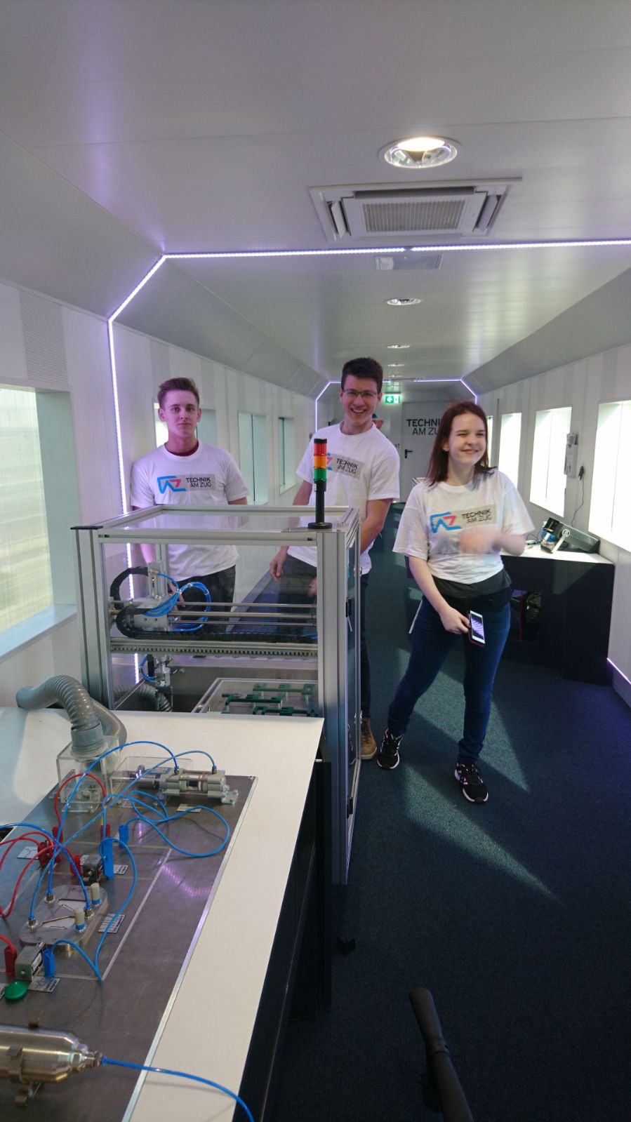 Vor unserer Tätigkeit als Guides wurden wir von einem „Technik am Zug Team“ über die Experimente, die wir anschließend in Alleinarbeit oder Teamwork vorzeigen mussten, informiert und eingeschult.